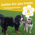 - Fruitables baked dog treats have a unique flower shape and a satisfying crunch that dogs love.
